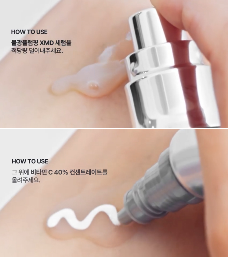 〈將「維他命C40液膜」與「超微水光修復精華」以1:1比例混合,調製成帶有絕佳抗氧性的美白精華來使用,最後塗抹乳霜鎖水鎮屏〉