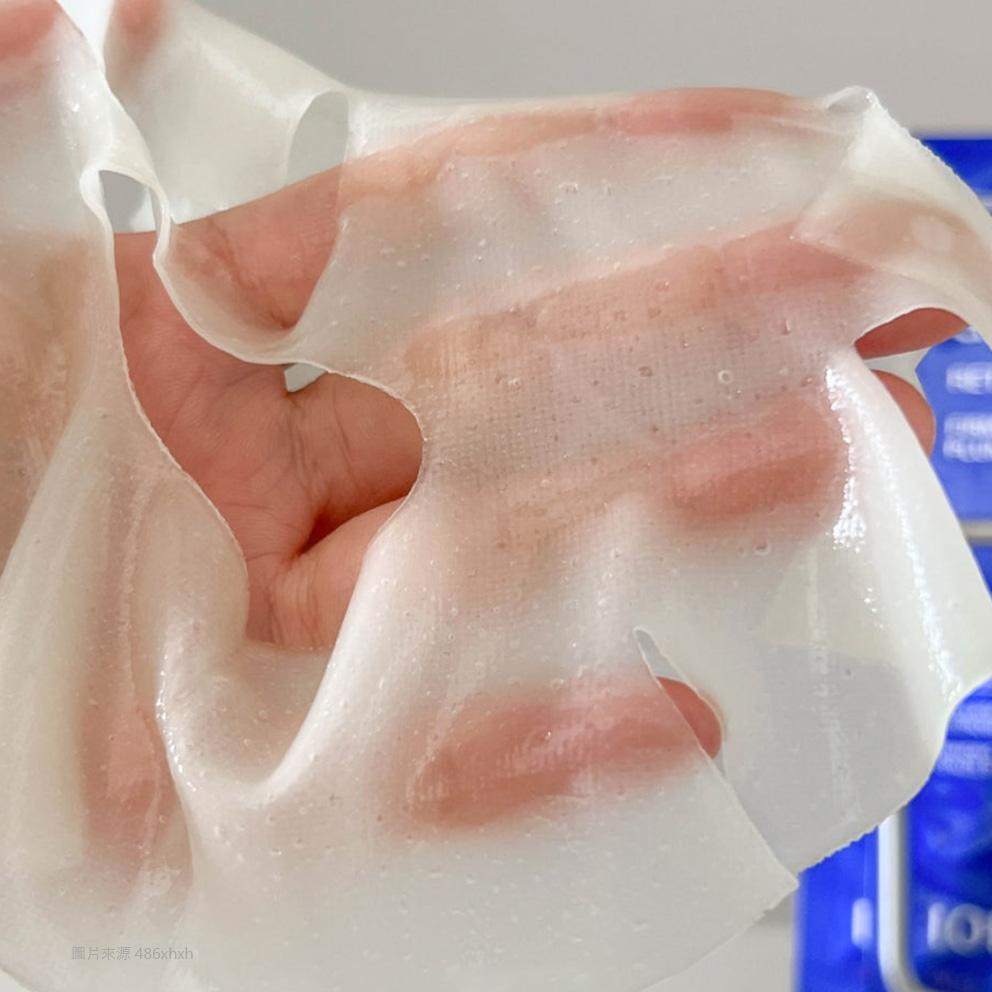 ● 面膜結構採用雙層材質,彈力網紗 + 膠原蛋白水凝膠,具優異的拉申彈力,可完全貼合臉型。