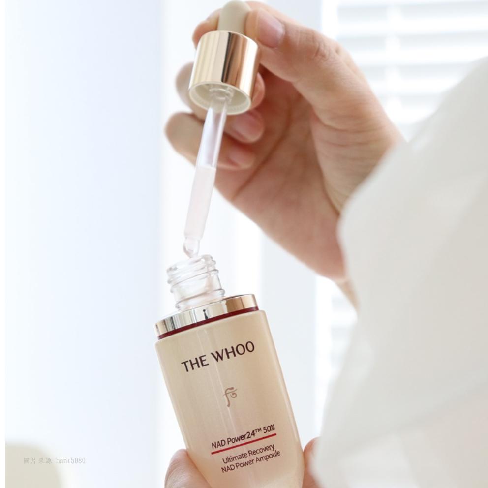 ● NAD Power 24™: NAD+ 是一種存在於所有生物體內的抗衰老成份,以每年4%的速度逐年遞減,乾燥、鬆弛、高壓與作息不良都是NAD+喪失的因素。WHOO 歷經十年研究開發出創新的抗衰老成份-- NAD Power 24™,以獨特的脂質體技術,將純度 99%的 NAD +包裹在脂質體中,使其滲透加快、深度加深、作用加大,是WHOO增強皮膚對 NAD+ 吸收的鉅作。